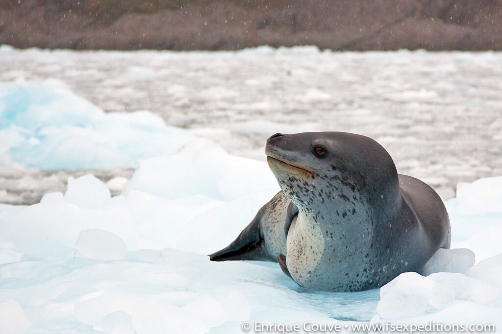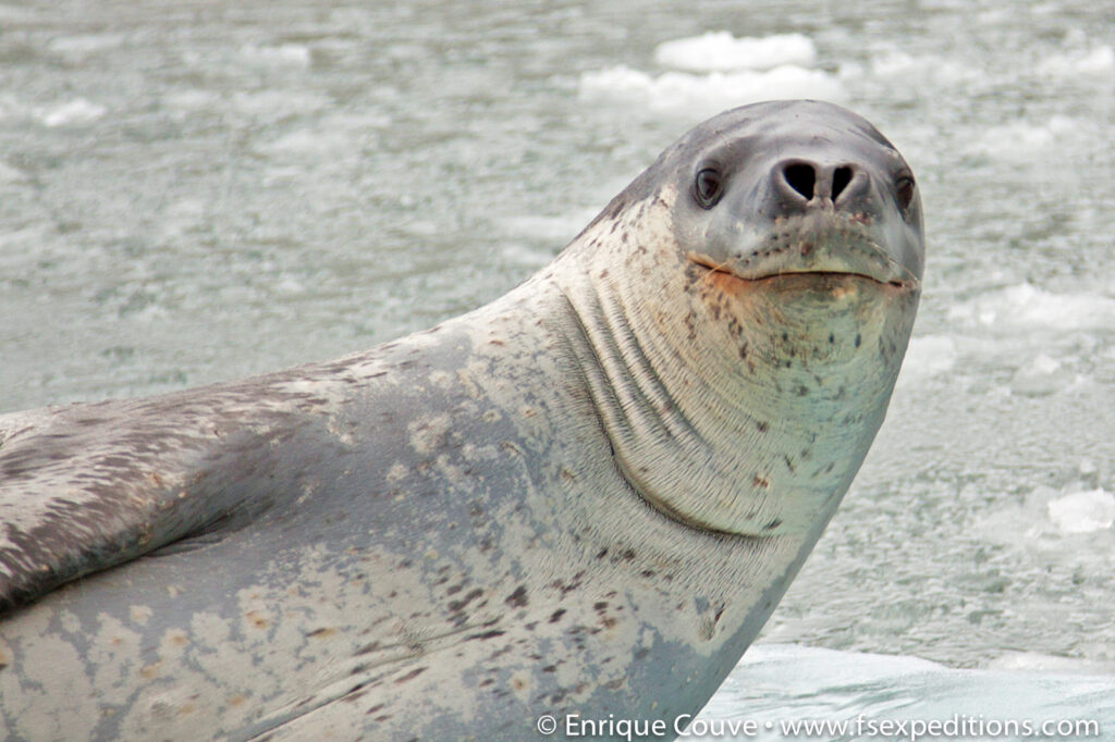 Amid floating icebergs and frigid waters lives one of the most remarkable predators of the Southern Hemisphere: the leopard seal (Hydrurga leptonyx). This marine mammal moves with impressive agility both in the water and on ice. Unlike other seals that live in colonies, the leopard seal is a solitary hunter and a swift swimmer.